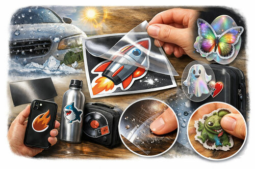 Печать наклеек давно вышла за рамки простой декоративной задачи. Сегодня стикеры используют на упаковке, в логистике, на технике, витринах и уличных поверхностях. В этих условиях решающую роль играет не только дизайн, но и то, как изделие поведёт себя при контакте с влагой, руками, солнечным светом и перепадами температуры. Ламинация — технологический этап, который напрямую влияет на срок службы и внешний вид наклеек. Защитная плёнка наносится поверх отпечатанного изображения и работает как барьер. Она принимает на себя механические нагрузки, снижает истирание и стабилизирует цвет. Разница между ламинированной и незащищённой наклейкой становится заметна уже через несколько недель активного использования, особенно если изделие находится вне помещения или постоянно контактирует с руками. Ламинация решает конкретные технические задачи. При трении о поверхность сумки, ноутбука или холодильника именно защитный слой изнашивается первым, сохраняя печатный слой целым. При попадании влаги ламин
