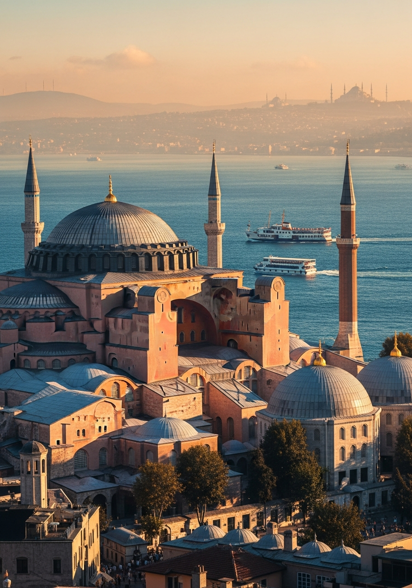 Грандиозный собор-мечеть в самом сердце Стамбула — то место, откуда начинается знакомство с городом. Величественный купол и древние мозаики создают особую атмосферу, где переплетаются эпохи и религии.