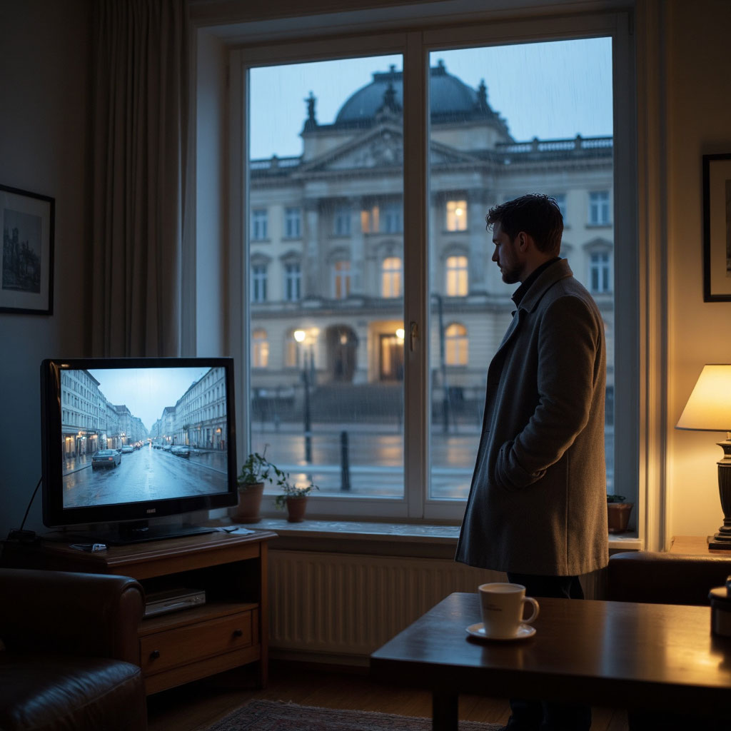 В один из октябрьских вечеров 2008 года двадцатипятилетний программист из Берлина по имени Лукас сидел в своей квартире, лениво переключая телеканалы. Он только что закончил работу над очередным проектом, чувствовал лёгкую усталость и хотел просто расслабиться перед сном. На улице моросил дождь, в комнате горел приглушённый свет, а экран телевизора мерцал, перебирая один за другим новостные каналы разных стран. Сначала он не обратил внимания. Обычный вечер, обычные репортажи: пожар в Шанхае, политические дебаты в Вашингтоне, прогноз погоды в Сиднее. Лукас лениво тянулся к пульту, когда вдруг замер, вглядевшись в экран. На немецком канале шёл прямой эфир с площади перед ратушей — репортёр рассказывал о грядущем фестивале. В кадре мелькали люди, спешащие по своим делам, и среди них… Лукас прищурился. Мужчина в тёмно‑сером пальто, с телефоном у уха. Что‑то в его облике показалось знакомым. Не успев додумать эту мысль, Лукас переключил канал. Британский новостной выпуск. Прямой эфир из Лон