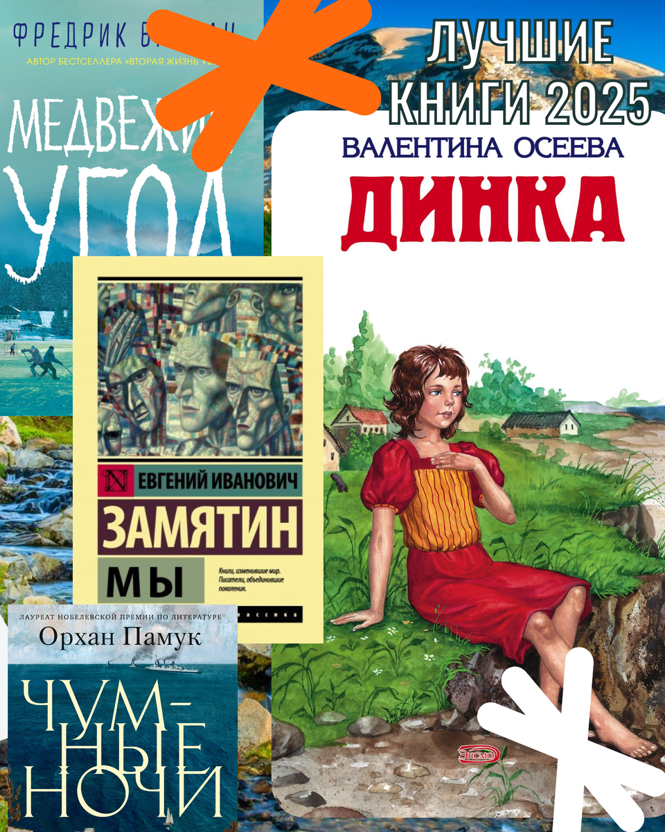 ЛУЧШИЕ КНИГИ 2025 По традиции, уже который раз говорю о лучших книгах моего прошлого читательского года. На этот раз четверка лидеров выглядит так. 1. Фредрик Бакман, Медвежий угол. Книга, с которой я начала знакомство с Бакманом в прошлом году и прочитала у него аж 4 романа. Это внушительно, потому что я редко читаю одних и тех же авторов в таком количестве. К сожалению, Бакман сейчас изымается из библиотек, а на лайвлибе одну из моих рецензий на него скрыли из обзора. Причина: наличие в книге лгбт тематики. Но данный роман неплохо было бы почитать подросткам. Он о жестокости, о гормональных всплесках, о первой любви и о взаимоотношениях с родителями. Я долго ходила под впечатлением. 2. Евгений Замятин, Мы. Книга вошла в лучшее прочитанное года случайно, если честно. Она зацепила меня не столько слогом - читать её было сложно, сколько проблематикой. Я люблю антиутопии. И идея общества, построенного на четких рамках, меня всегда интересовала. А Замятин - один из первых, кто её описал.