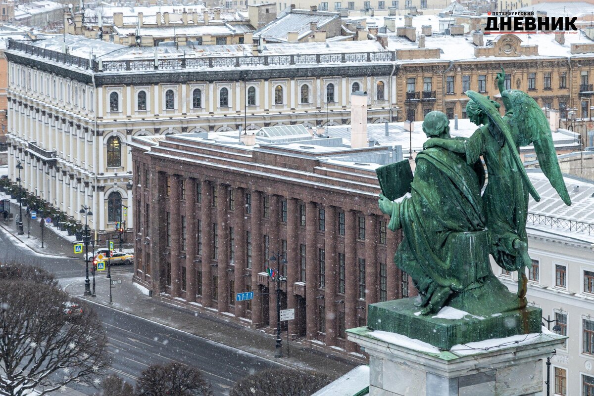 Фотокорреспондент запечатлел, как выглядит Петербург в морозный день с высоты колоннады Исаакиевского собора.
