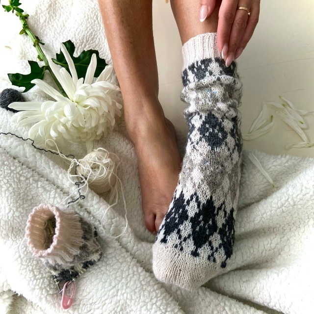 Постигать тонкости будем на примере носочного проекта с жаккардовым узором ромбы «аргайл». Это классический узор, подходящий всем! Главное, выбрать оттенки, выписывающиеся в твой гардероб. Подборку даю на примере носочной magic от infinity.design Цифры обозначают код цвета.
