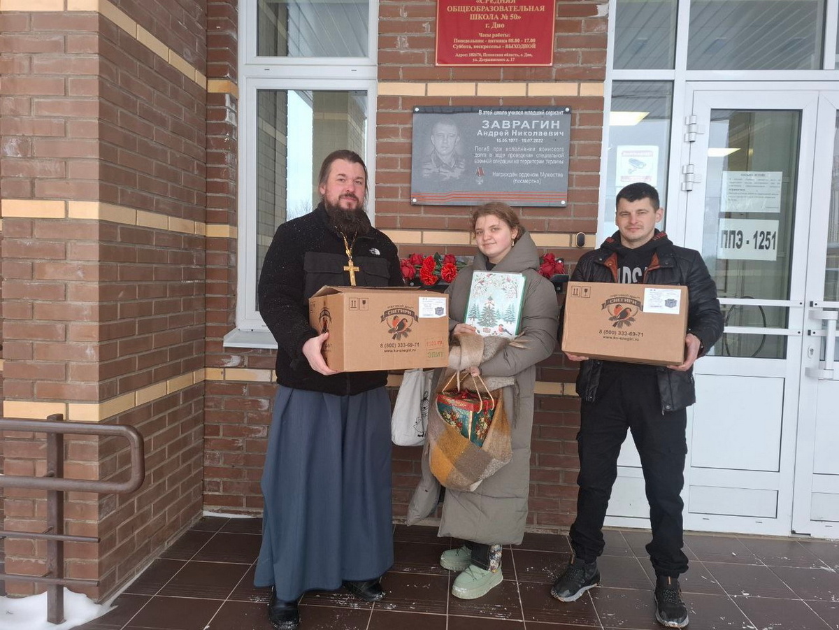 13 января 2026 года, в продолжение Святочных дней настоятель храма Архангела Михаила города Дно протоиерей Сергий Андреев и волонтёр проекта Московского Сретенского монастыря «Родная земля» Елизавета Шевёлкина посетили учащихся коррекционного класса средней школы № 50 города Дно. Батюшка со спутниками поздравили ребят, спели Рождественские колядки и подарили сладкие подарки.