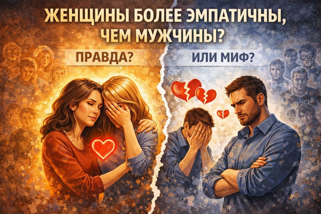 Фразу «женщины более эмпатичны, чем мужчины» мы слышим часто. Её используют и в быту, и в спорах, и даже в попытках объяснить, почему кто-то «лучше понимает чувства», а кто-то — «холодный» или «черствый». Но так ли это на самом деле? И если различия есть — откуда они берутся? Эмпатия — это не просто «быть добрым» или «много сочувствовать». Она включает несколько разных способностей: Большинство исследований действительно показывают: в среднем женщины демонстрируют более высокую эмпатичность, особенно в двух аспектах: Но слово «в среднем» — ключевое. Это не означает, что все женщины эмпатичны, все мужчины — нет, или что эмпатия — врождённое «женское качество». 1. Биология (но не так, как принято думать) Некоторые гормональные и нейробиологические факторы действительно могут усиливать чувствительность к эмоциям других — например, системы, связанные с привязанностью и заботой. Но биология не диктует поведение напрямую. Она лишь создаёт предрасположенности, которые дальше формируются средо
