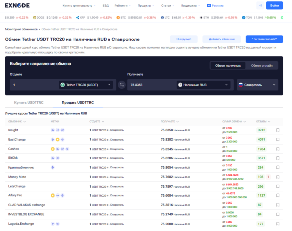 - Востребован среди пользователей USDT обменников в Ставрополе.
