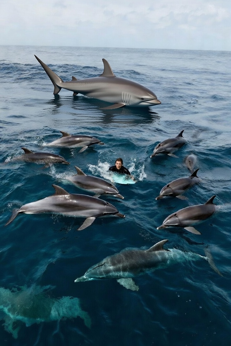 Дело было примерно так: серфил значит, Тодд Эндрис и вдруг, на него напала акула! К сожалению я так и не понял, как это вышло, все, что мне удалось найти это информацию, что в некоторых местах где есть опасность акул - есть таблички "плавайте на свой риск".Единственное, что точно, известно, так это то, что тип серфил там постоянно и не он один, а значит, акулы там не часто. К делу: Тодд рассказывает, как он во время серфа засмотрелся на друга, оседлавшего волну и тут, неожиданно, в него врезается акула, отбрасывая, его на 15 футов. Все происходило очень быстро, на инстинктах он молотил ее левой рукой, стараясь попасть в глаза. Здесь его спасло то, что он был все еще на доске, поэтому акула не смогла его заглотить, а в следующее мгновение - разжала пасть и отплыла(его и меня это шокировало) Далее, он заметил толпу дельфинов, которая перепрыгивала через него, беря, его в кольцо. Его друг подплыл к нему и крикнул - бери доску! Здесь он во всю силу сфокусировался, чтобы взять волну, кото