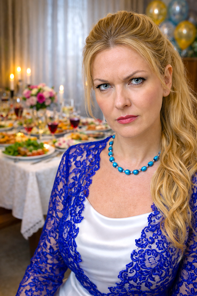 С утра Злата Петровна приехала «контролировать сервировку». Она была одета в платье с люрексом, которое делало её похожей на диско-шар, переживший лихие девяностые. На голове возвышалась шляпка с пером, которое, казалось, пыталось поймать сигнал из космоса.