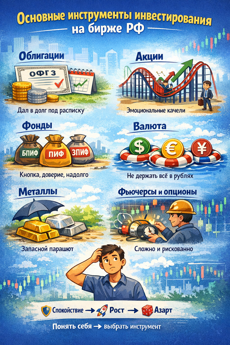 Когда я только начал смотреть в сторону инвестиций, мне казалось, что есть два варианта: либо акции, либо «что-то сложное для умных». Оказалось — вариантов больше.
