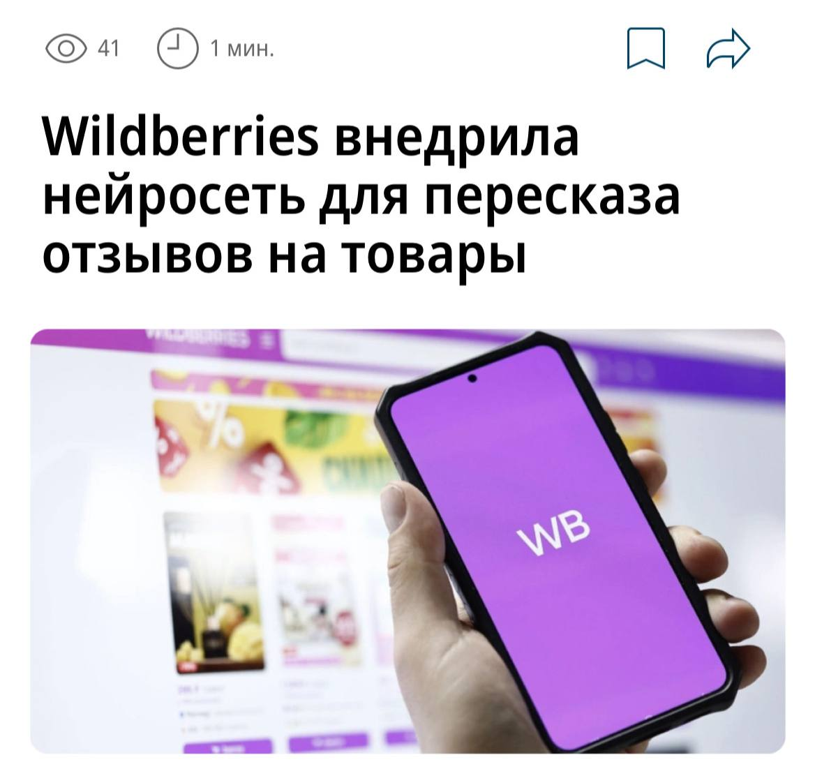 Новая система на основе ИИ: от данных к действиям Компания Wildberries продолжает активно развивать технологии искусственного интеллекта в сфере электронной коммерции. В рамках стратегии повышения качества обслуживания клиентов и оптимизации ассортимента, платформа запустила систему на основе ИИ для автоматического анализа миллионов отзывов о товарах, оставляемых покупателями ежедневно. Новая система использует передовые методы обработки естественного языка (NLP), включая трансформеры и глубокое обучение, чтобы распознавать не только явные оценки — «хорошо», «плохо» — но и скрытые эмоции, контекстные нюансы и специфические жалобы. Например, ИИ может выявить, что покупатель недоволен не самим товаром, а его упаковкой, или что отзыв содержит скрытую рекомендацию, несмотря на низкую оценку. Классификация отзывов: точность до деталей Алгоритмы классифицируют отзывы по категориям: качество, доставка, соответствие описанию, размер, цвет, функциональность и т.д. При этом система способна опре