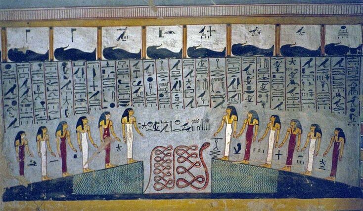 Дуат — сложная система подземного мира, через которую проходят души. Процедура «взвешивания сердца» перед Осирисом: если сердце легче пера Маат — душа попадает в Блаженные поля (Аару), если тяжелее — аннигиляция. Особенность: ад здесь не вечен, а является испытанием, очищением или фильтром, что отражает египетскую заботу о порядке (Маат).