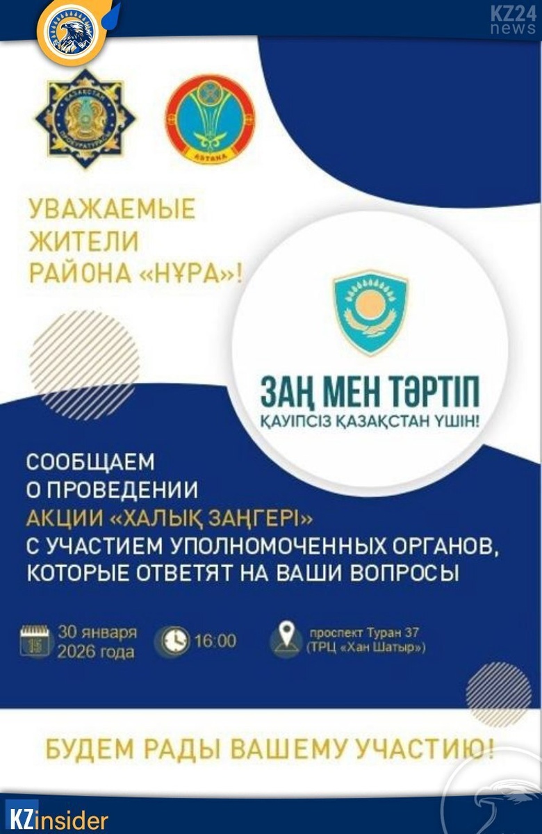 👮♂️ В рамках все той же инициативы "Закон и порядок" торгово‑развлекательном центре «Хан Шатыр» 30 января 2026 года в 16:00 пройдут