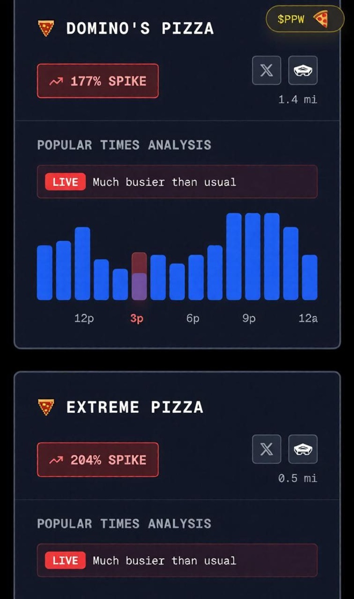 ▪️Авианосная ударная группа ВМС США во главе с атомным авианосцем USS Abraham Lincoln вошла в Малаккский пролив и направляется на Ближний Восток. ▪️Трамп может приказать нанести военный удар по Ирану. ▪️Ранее о том, что армия Израиля завершила подготовку к удару США по Ирану писала Times of Israel. ▪️Европейские авиакомпании начали отменять рейсы в Израиль, самолёты массово покидают воздушное пространство страны прямо сейчас. 👆👆👆 Рестораны вокруг Пентагона фиксируют повышенный спрос на доставку пиццы, такая же ситуация складывалась во время крупных военных операций, свидетельствуют данные портала Pentagon Pizza Index. "Состояние готовности (DoughСon) 4. Усиленное разведывательное наблюдение", - оценивает портал количество заказов. В двух ресторанах спрос вырос в полтора раза, в третьем на 179%, свидетельствуют данные портала. Портал сообщал о высокой активности в местных пиццериях 3 января, тогда президент США Дональд Трамп отчитался об операции по похищению главы Венесуэлы Никол