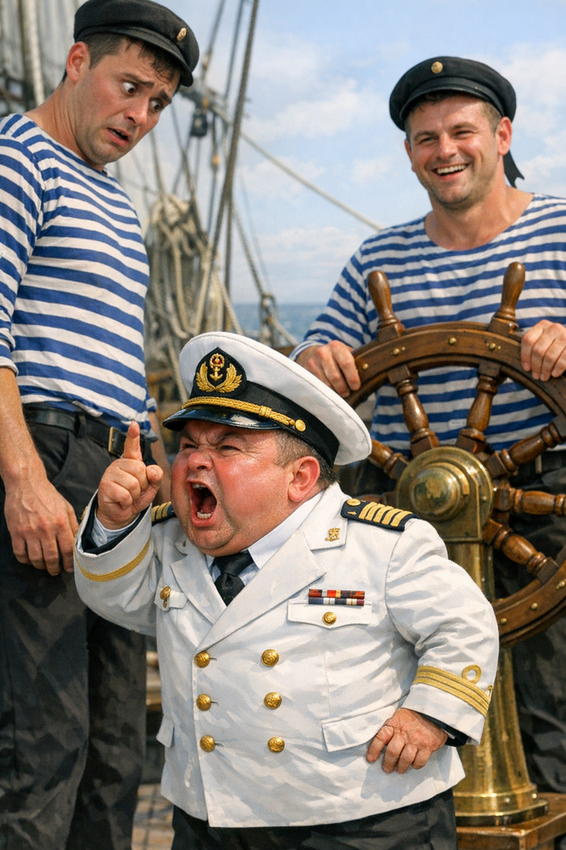 Капитан крупного торгового судна родом из города неподалёку от Азовского моря — невысокого роста мужчина с избыточным весом.