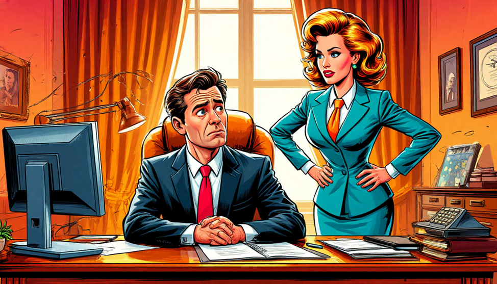 Эдуард Максимилианович считал себя человеком старой закалки, но новая секретарша Леночка раз за разом пробивала его броню своим обезоруживающим «И чьто?». В этот жаркий июльский полдень кондиционер в офисе решил окончательно капитулировать. В кабинете стояло вязкое марево, пахнущее крепким кофе и дорогим парфюмом Леночки. Сама она сидела напротив, закинув ногу на ногу так высоко, что Эдуард Максимилианович невольно начал вспоминать курс школьной геометрии, пытаясь вычислить угол падения своего взгляда. – Елена, – откашлялся он, чувствуя, как узел галстука превращается в удавку. – У вас… э-э… разрез на юбке. Он кажется мне излишне функциональным. Леночка медленно поправила выбившуюся прядь, и этот жест заставил шелк ее блузки натянуться так опасно, что пуговица в районе груди жалобно звякнула. – И чьто? – мурлыкнула она, глядя на него из-под ресниц. – То, что я не могу сосредоточиться на годовом отчете! – почти выкрикнул Эдуард Максимилианович, лихорадочно перебирая бумаги. – Вы мешаете