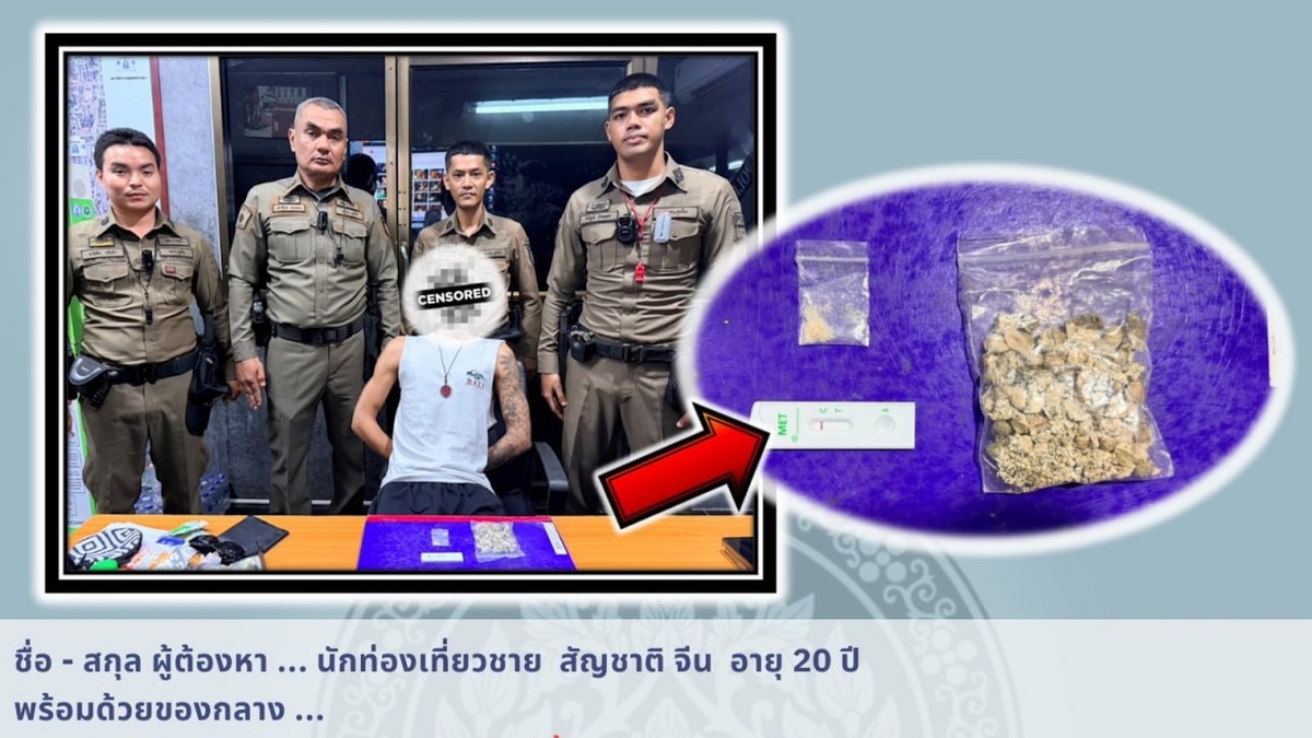 Молодой гражданин Китая был арестован сотрудниками полиции Патонга после проверки на пляжной дороге Thaweewong Road. Отчет об аресте был опубликован днем 23 января. Сама операция была проведена предыдущей ночью. Полиция не указала, при каких обстоятельствах был произведен арест и чем иностранец привлек к себе внимание. Однако в ходе личного досмотра у 20-летнего гражданина КНР было изъято 0,16 грамма кристаллического метамфетамина и 14,45 граммов псилоцибиновых грибов. Также сотрудники полиции Патонга взяли у туриста анализы на содержание наркотиков в организме. Тест на метамфетамин дал положительный результат. Иностранцу предъявили обвинения по трем статьям: ▫️Хранение наркотических средств первой категории, ▫️Хранение наркотических средств второй категории, ▫️Употребление наркотических средств первой категории. Имя подозреваемого отсутствует в публично доступных материалах полиции Патонга. С оригиналом сообщения можно ознакомиться на сайте «Новостей Пхукета». Фото: Patong Police