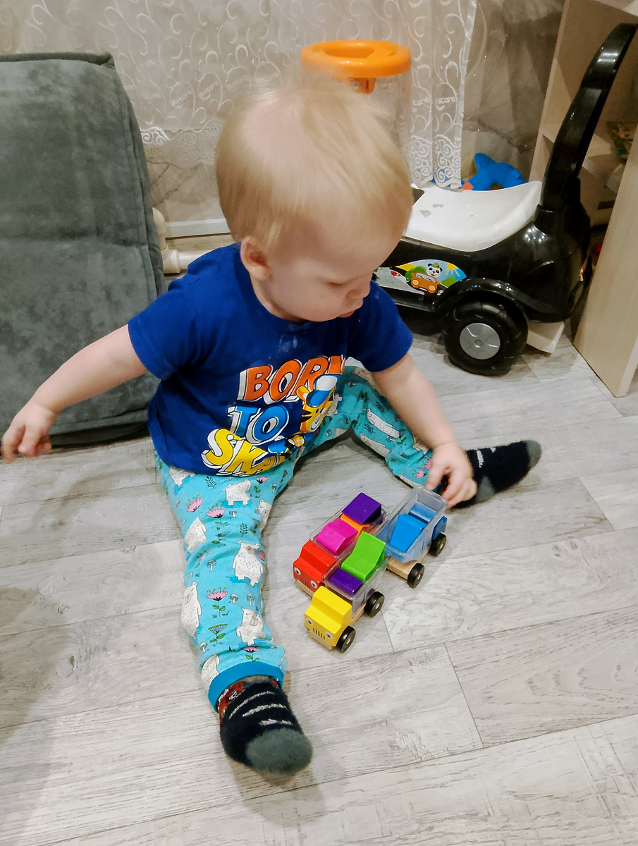 Правда тоже есть небольшой насморк но это больше от очередного зубика, соответственно и настроение у него разное. Привык за каникулы что все дети дома с ним играют, сейчас кто приходит домой бежит встречает, обнимает и зовёт играть, притопывая ногой и тянет за руку.