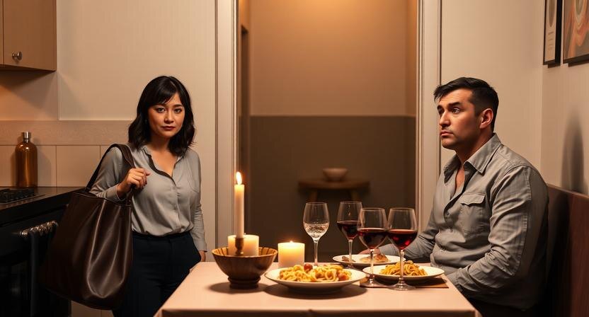 А развязка пришла сегодня. Она вошла, а в квартире — свечи. Букет тех самых дешевых роз, что пахнут не цветами, а холодом и пластиком. На столе — макароны с томатным соусом, явно его готовки, и бутылка вина подороже, чем они обычно брали. Он стоял в чистой, но мятой рубашке, и улыбался. Улыбка была кривой, вымученной.