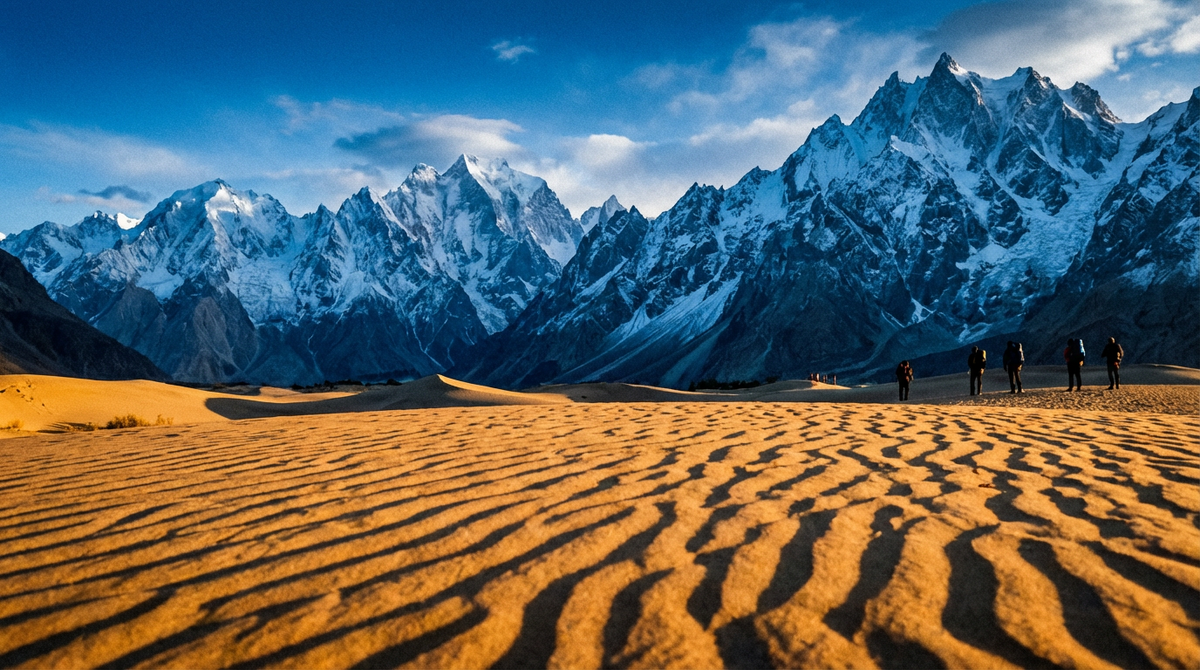 Но главное чудо, доступное без альпинистского снаряжения, — это Холодная пустыня Катпана (Katpana Desert). Представьте: вы идете босиком по мягкому песку, как в Эмиратах, но воздух звенит от прохлады, а горизонт закрывают снежные стены Каракорума. Это сюрреализм в чистом виде. Самая высокогорная пустыня в мире ждет вас. Попасть в Скарду — это уже история для внуков. Скарду — это цивилизация. Если вы ищете пейзаж, которого нет больше нигде на планете, — вам в Скарду.