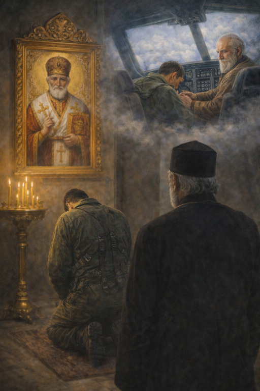 "Сынок, ты не волнуйся... " Служил в нашем храме пожилой священник - отец Алексий Емельяненко. Он рассказывал такую историю. - Это случилось лет двадцать назад. Я тогда в этом храме служил пономарём, а по совместительству ещё и сторожем. Однажды закончилась служба, я в притворе дождался, пока выйдут прихожане и совсем уже собрался закрыть двери, как вдруг вошёл средних лет мужчина и стал, обходя храм изнутри, внимательно всматриваться в иконы. Я стоял несколько в стороне, под клиросной лестницей и он меня не заметил. Возле большой, старинной иконы святителя Николая мужчина вдруг рухнул на колени и разрыдался. Это было так неожиданно, что я не решился его тревожить... Через несколько минут мужчина поднялся с колен и направился к выходу. Он бы, конечно, прошёл мимо, но я не удержался и спросил не случилось ли с ним какой-нибудь беды и не могу ли я помочь... - Нет, нет - ответил он взволнованно, теперь уже всё позади. Просто... Понимаете, я военный лётчик, с аэродрома в Гвардейском -