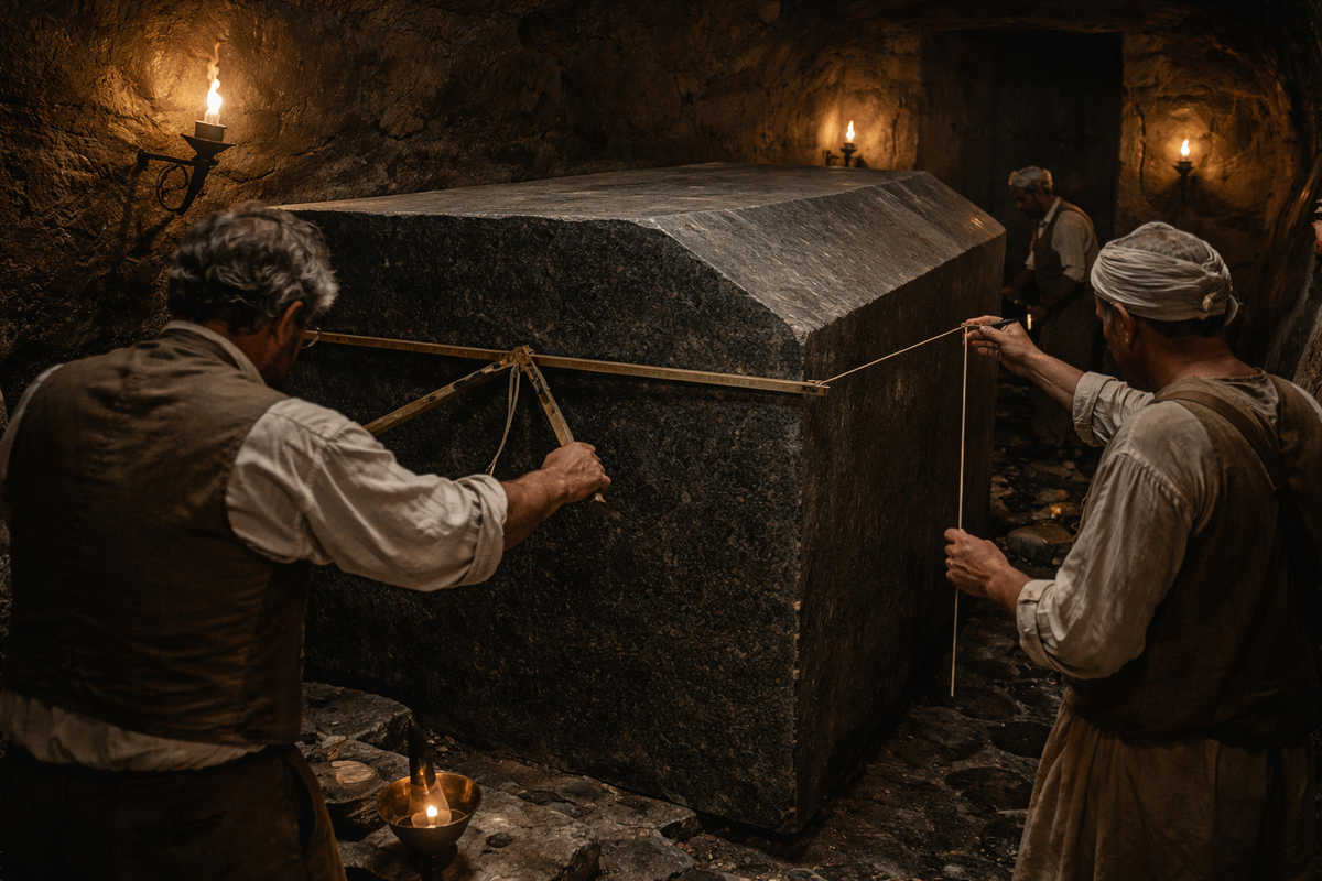 В 1850 году французский египтолог Огюст Мариет спустился в подземелье Серапеума в Саккаре и обнаружил 24 гранитных саркофага. Каждый весил 70 тонн. Внутренние углы — идеально прямые, отклонение менее 0,05 мм. Крышки прилегали так плотно, что между ними не проходило лезвие ножа. Мариет записал в дневнике: «Это работа не людей. Это работа титанов».