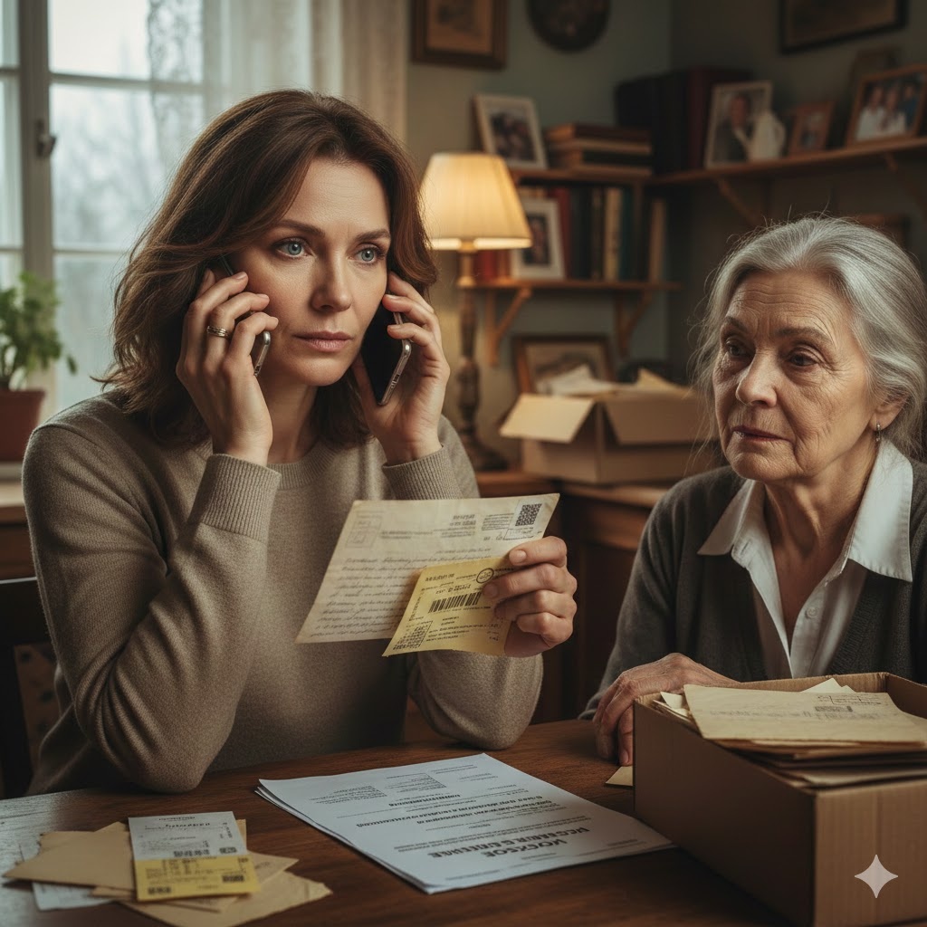 Вернувшись домой, Елена застала мать в странном состоянии. Вера Петровна сидела на полу в гостиной, окруженная старыми коробками из-под обуви. В комнате пахло нафталином и старой бумагой.