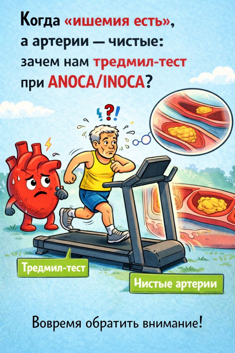 🫀 Когда «ишемия есть», а артерии — чистые: зачем нам тредмил-тест при ANOCA/INOCA