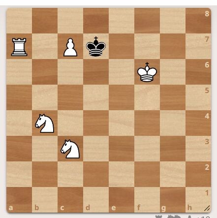 Белой пешке 1 ход до ферзя. Черный король контролирует превращение. Автор задачи В. Загоруйко 1982 год. Ход белых, мат в 2 хода. Подписывайтесь и ставьте лайк. Решение пишите в комментариях вместе с "секундами" ушедшими на решение.