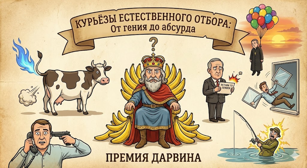 Интересные факты о великих людях показывают, что между гениальностью и полным абсурдом всего один шаг. Вы когда - нибудь задумывались, что объединяет французского императора, взрывающуюся корову и ваш утренний завтрак? Звучит как начало очень странного анекдота, но на самом деле это наша с вами реальность, где законы физики порой сталкиваются с невероятным человеческим упрямством. Порой кажется, что мир устроен логично, но стоит копнуть чуть глубже в историю или биологию, как на поверхность всплывают такие подробности, от которых волосы встают дыбом даже у самых стойких скептиков. Курьезы естественного отбора: когда премия Дарвина находит героя Начнем с самого жесткого - с теории эволюции Чарльза Дарвина. Старина Чарльз верил, что выживают не самые сильные, а те, кто лучше всех адаптируется к изменениям. Но есть отдельная категория граждан, которая помогает человечеству "улучшить генетический фонд" весьма радикальным способом - просто выходя из игры самым нелепым образом. Так и появила