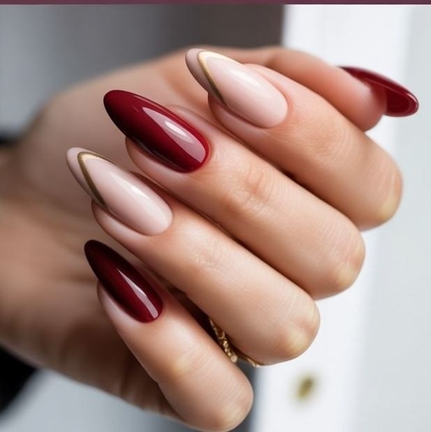 Миндалевидные ногти беж и бордо идеальное сочетание