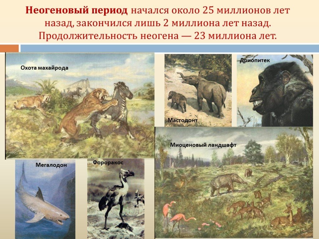 65-5 миллионов лет назад. Первые млекопитающие и субтропики на месте Каширы. Примерно 65 миллионов лет назад начался палеоген. С поднятия Русской платформы, рельеф сильно расчленил реки. В палеогене появились первые млекопитающие. Наступивший неоген (20-6 миллионов лет назад) принес в наш край теплый и влажный климат. На нашей территории росли теплолюбивые широколистные растения, которые в наше время характерны для района Средиземного моря. В эпоху миоцена активно образовывались реки, удлинялись и углублялись их долины. Реки прорезали главный водораздел между бассейнами северных и южных морей, который сформировался на Русской плите в районе Тамбова. Образовалась огромная Ергень-река (Пра-Дон), верховья которого начинались в Подмосковье. В долинах рек активно переоткладывались мезозойские пески. Такие неогенные переотложения занимают сегодня целую долину, образующую неровную трапецию по линиям д.Масловод.Дубакино-с.Спас-Журавна – по линии железной дороги до станции Богатищево – выше, д