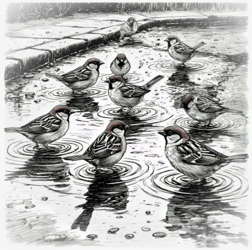 - Эк, купаются! Значить, быть теплу! Смотри-ка, чё устроили... Хорошая птичка - воробышек. Живая, весёлая! Люблю я их...
