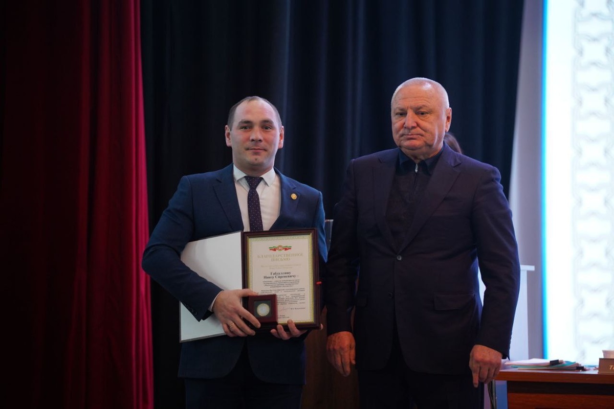 ветеринарному и фитосанитарному надзору состоялось торжественное награждение. За плодотворную работу и существенный вклад в экономическое развитие Республики Татарстан Благодарственным письмом председателя Госсовета Республики Татарстан был награждён начальник-главный ветеринарный врач ГБУ "Мензелинское РГВО" Габдуллин Нияз Сиреневич.