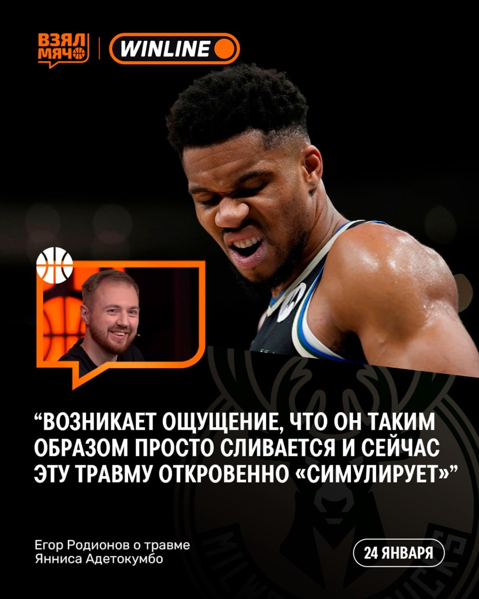 ? Егор Родионов рассказал своё видение ситуации с повреждением у суперзвёздного форварда. 🗣 «Травма любого игрока — безусловно, новость печальная, и в большинстве случаев она автоматически вызывает сочувствие. Но вот Яннис с повреждением икроножной мышцы почему-то этого сочувствия не вызывает вообще. Более того — возникает ощущение, что он таким образом просто сливается и сейчас эту травму откровенно „симулирует“. Причём делает он это не впервые за сезон. В начале декабря был ровно тот же манёвр — аккурат в момент, когда начали циркулировать первые слухи о возможных звонках по его обмену. При всём уважении к его таланту и заслугам, то, что он делает сейчас, выглядит как цирк. Его желание бороться за титулы абсолютно понятно — он это обозначил напрямую и максимально честно. И в момент, когда «Милуоки» больше не даёт ему этой возможности, логично, что он не видит смысла упираться. С этим вообще нет вопросов. Но настолько наглого двуличия от суперзвезды я, честно, не припомню — даже