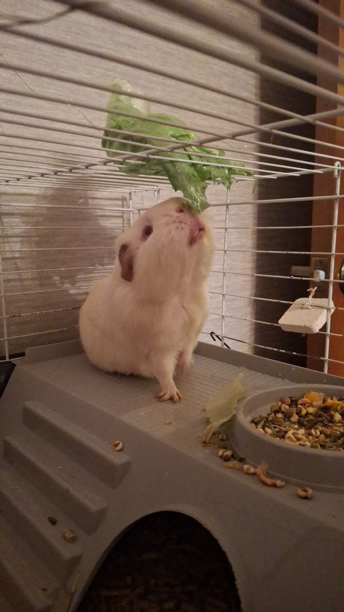 Наш завтрак всегда начинается со вкусного свежего листочка. К сожалению, приходится покупать в магазине, когда на дворе как сейчас. Но чего не сделаешь ради любимой свинки