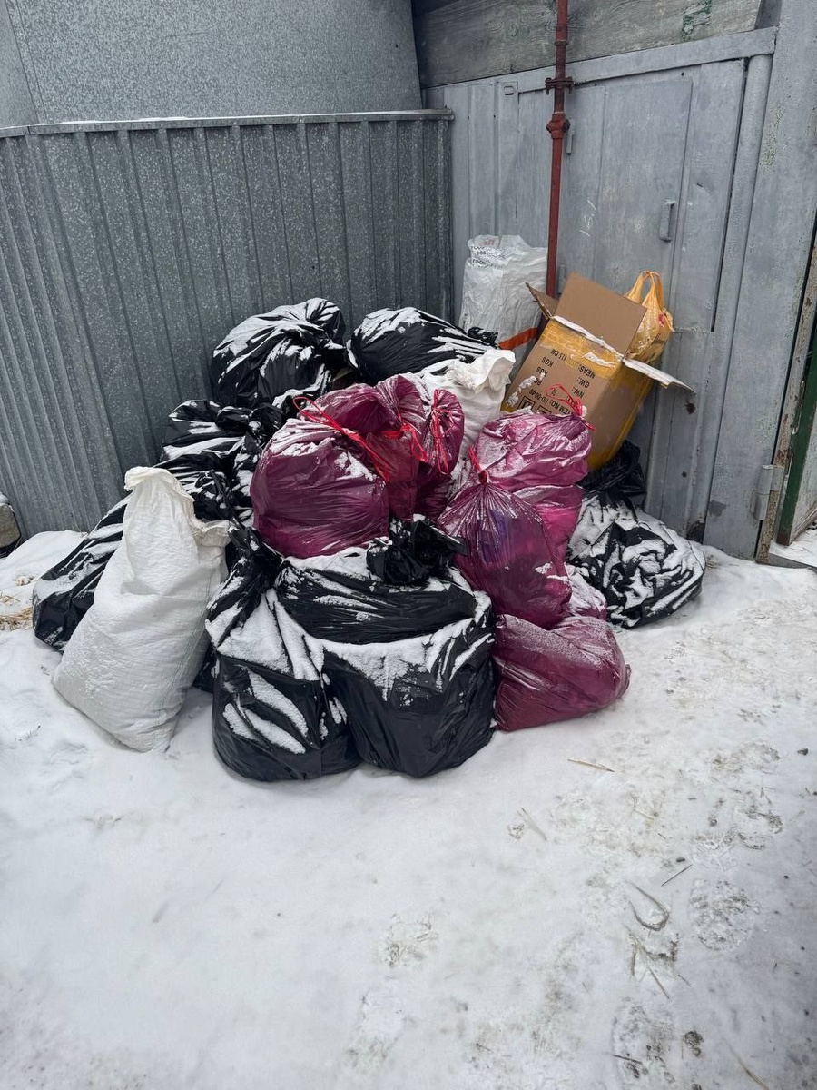 Очередной вывоз мусора...Это в зимнее время очень затратная статья расходов для приюта...Каждые 3-4 дня - смена соломы ,опилок