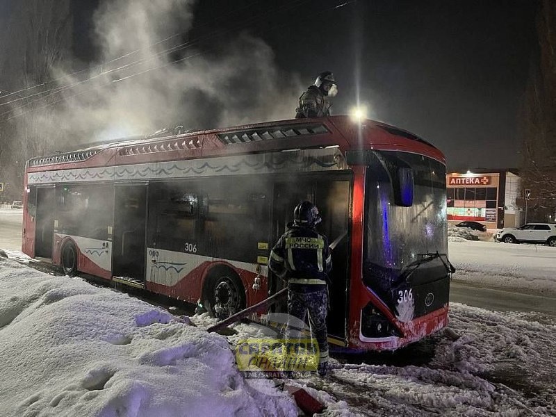 23 января в Балаково Саратовской области загорелся троллейбус на улице Трнавской
