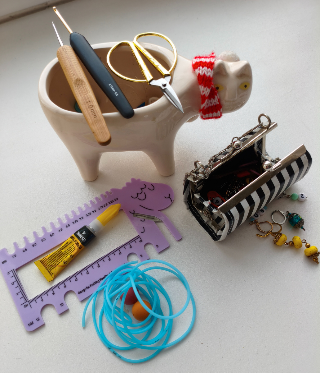 В нем мне удобно хранить съёмные спицы (это деревянные книтпро Симфония) и крючки.