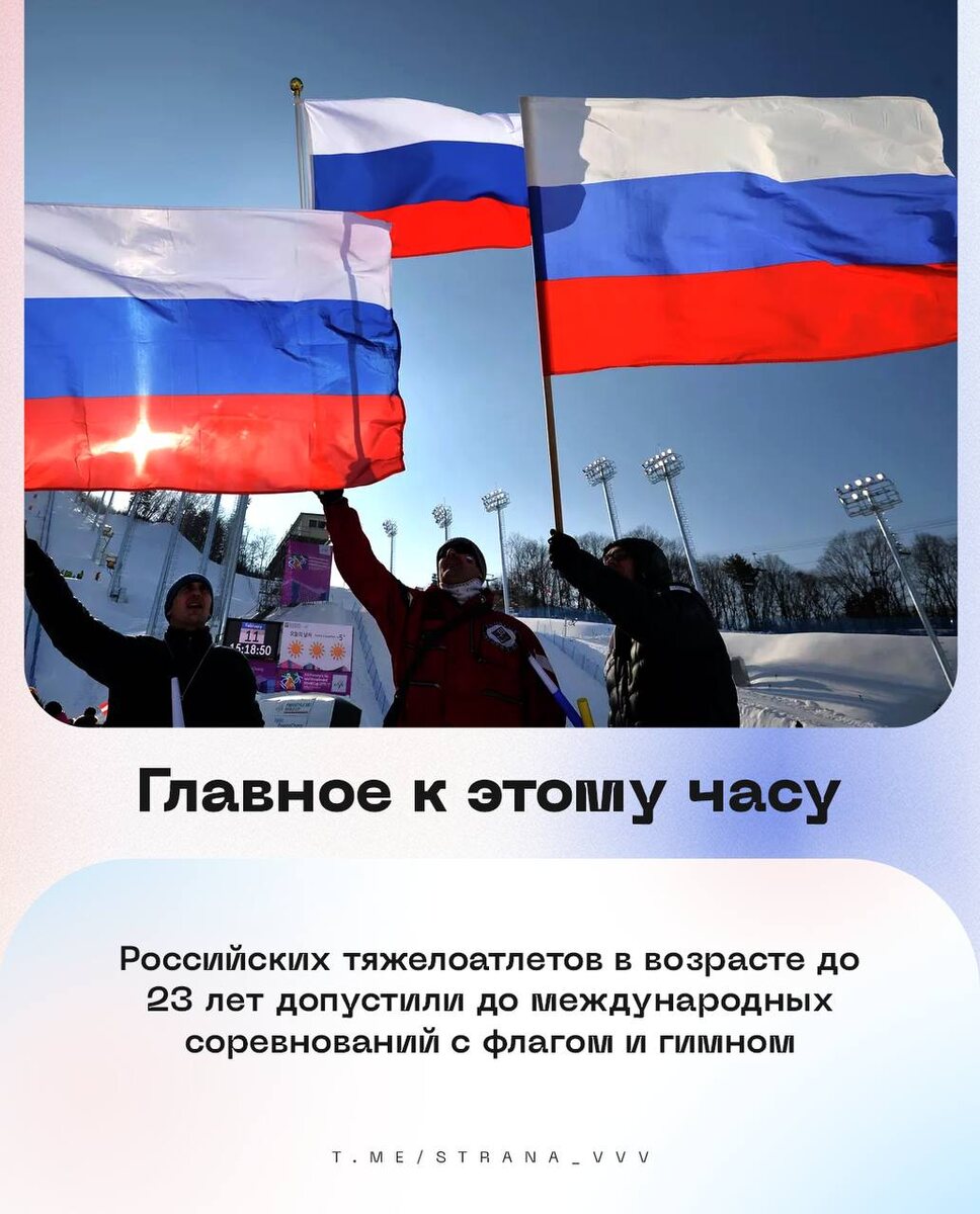 : 🔹Российских тяжелоатлетов в возрасте до 23 лет допустили до международных соревнований с флагом и гимном. 🔹За ночь над регионами РФ уничтожено 75 украинских БПЛА — Минобороны. 🔹В Мурманской области из-за отключений света ввели режим повышенной готовности — губернатор Чибис. 🔹Максимальная оплата по больничному из-за травмы на работе превысит 500 тыс. руб. с 1 февраля. 🔹Выдача паспорта и регистрация брака должны быть бесплатными для россиян — Миронов. 💰Курсы валют: доллар — 📉75,92; евро — 📈89,02; юань — 📈10,87. ✅ «В Стране» в MAX