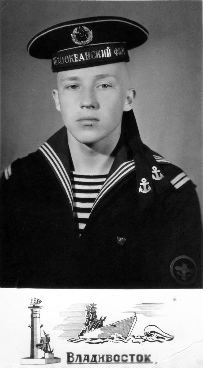 Старшина 2 статьи Тихоокеанского флота в форменной суконной рубахе с нашивными погончиками