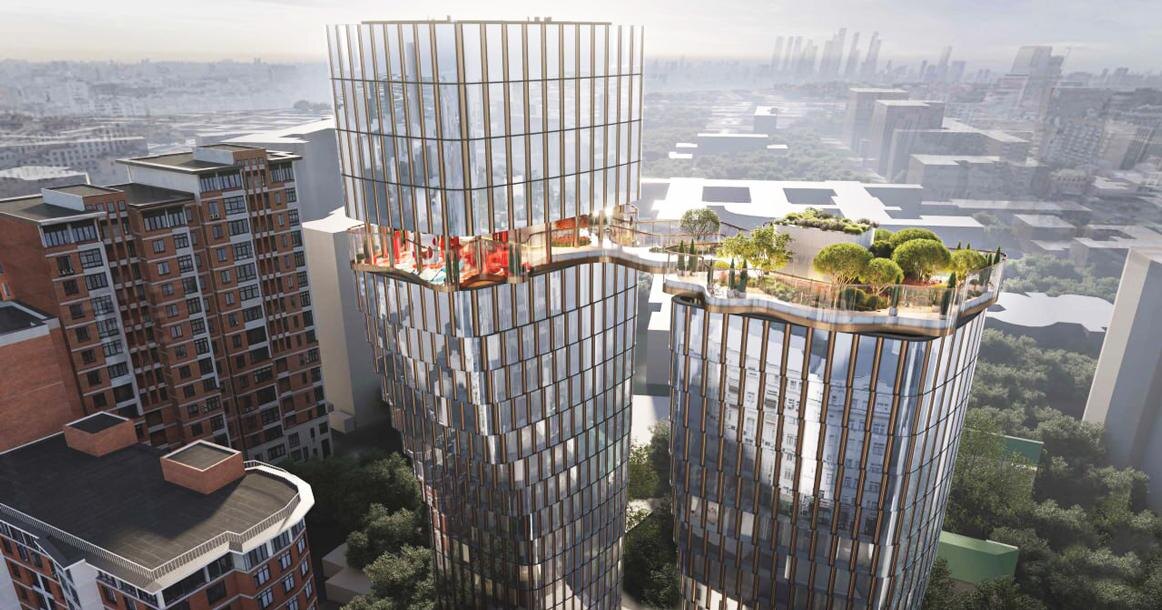 😊 На Новослободской готовят проект, мимо которого сложно пройти спокойно. В жилом комплексе между двумя башнями появится парящий мост, а прямо на крыше обещают сделать открытый сад🌴 Обещают зону для йоги со стороны восхода и бар с видом на закат. Мы, конечно, уже представили идеальную картинку, а потом вспомнили, что это Москва 🤭, и зимой тут будет ой как не до йоги🤭 В любом случае идея смелая, а наблюдать за тем, как город уходит вверх, всегда любопытно🔥