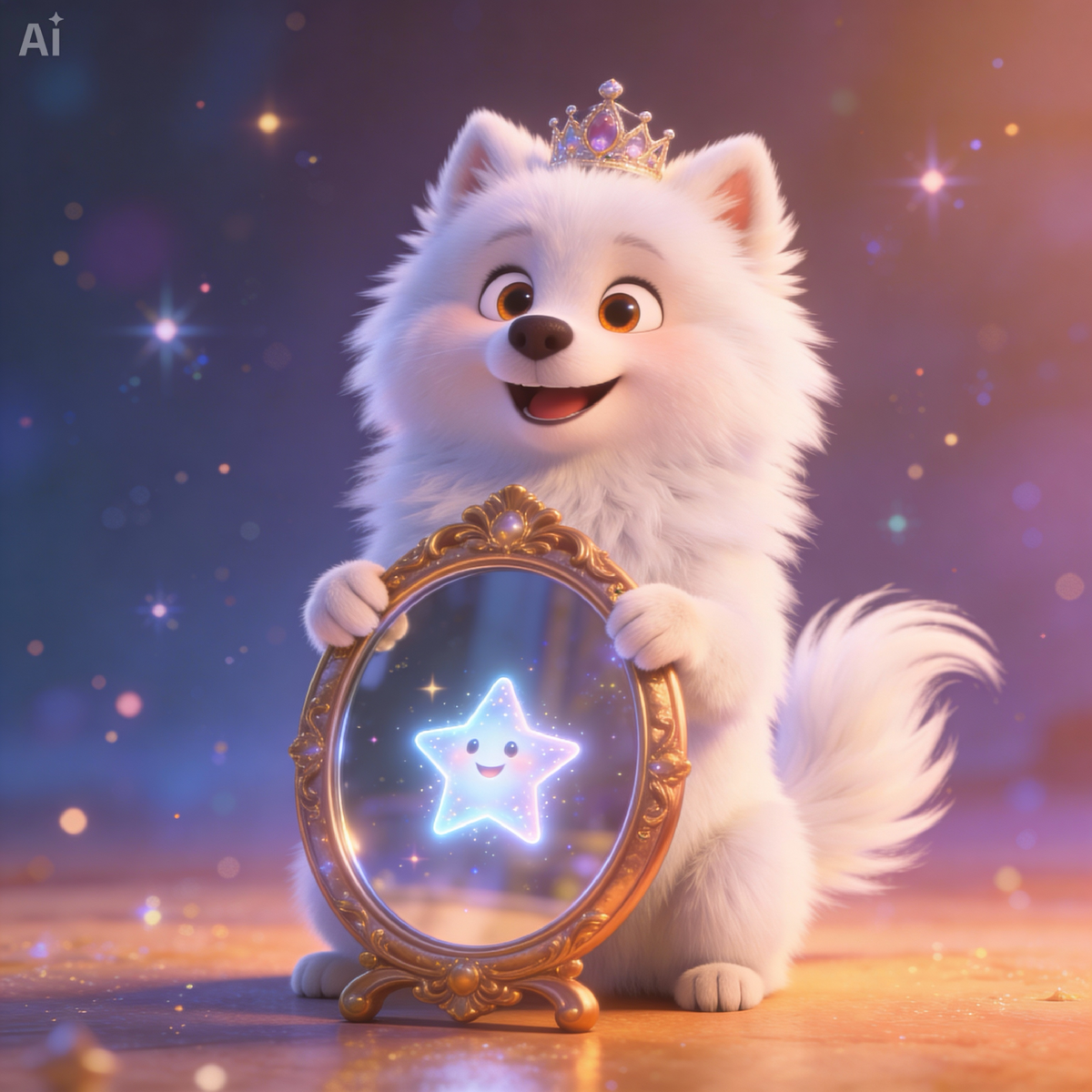Долли будто застыла: копытце, державшее зеркальце, медленно опустилось, но не выпустило подарок. Она слегка наклонила голову, завитки шерсти блеснули, отражаясь в перламутровой рамке. В глазах ее появилось странное стеклянное выражение, как будто кто-то затуманил веселье, которым овечка всегда отличалась.