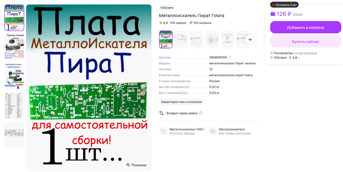 Добрый день дорогие друзья. Я просматриваю свои архивы, и продолжаю из них выбирать то, что может представлять интерес моим читателям, и сегодня расскажу про простой чувствительный металлоискатель на 3 транзисторах для начинающих радиолюбителей, и если мне не изменяет память, описание я нашел на одном из индийских радиолюбительских форумов. Конечно же, среди моих читателей сразу найдутся такие, кто скажет: а зачем он нужен, если есть очень популярный у наших радиолюбителей металлоискатель «Пират». Кстати в Wildberries я недавно заказал себе плату металлоискателя «Пират», может быть когда ни будь и соберу, тем более что все детали у меня к нему есть. Вот схема к этой плате А это спецификация деталей Есть в продаже и более продвинутая плата к металлоискателю «Пират», но она и стоит дороже Вот к ней схема Ну и на ОЗОНЕ предлагают купить плату самого простого металлоискателя Но, тем не менее, не смотря на огромный выбор предложений плат и наборов для сборки металлоискателей, радиолюбител