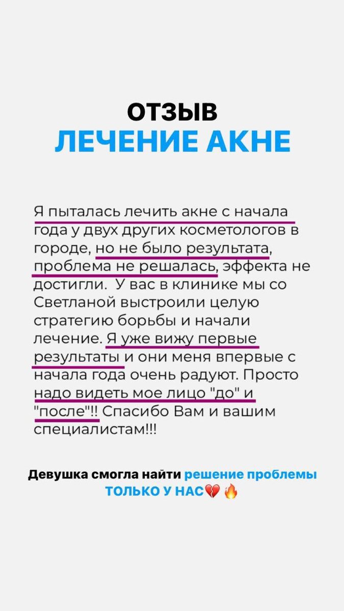 «САМО ПРОЙДЕТ» ПОРА ДЕЙСТВОВАТЬ! 🦠‼️ Мы знаем, как тяжело принимать акне. Когда каждое утро начинается с осмотра новых воспалений в зеркале, а уверенность в себе тает на глазах. Это физическая боль и моральное истощение. 😭 Акне — это испытание, которое требует сил, принятия и, главное — правильных инструментов коррекции. В клинике «Богиня» мы не просто косметологи, мы — ваши проводники к здоровой коже. Мы используем «умные» инструменты коррекции, которые сохраняют ресурс вашего организма, а не истощают его. Ваш путь к свободе: 1. Консультация врача-дерматолога. 2. Индивидуальный план лечения. 3. Видимый результат и счастье быть собой. ✨ Почему наше лечение работает? 🧬 Биохакинг кожи: Мы лечим причину, а не маскируем следствие. ❌ БЕЗ ретиноидов и антибиотиков: Мы доказали, что чистая кожа возможна без побочных эффектов для печени и ЖКТ. 🔬 Инновации: Фотодинамическая терапия и авторские протоколы позволяют «погасить» очаги воспаления на клеточном уровне. Хватит прятаться за фил