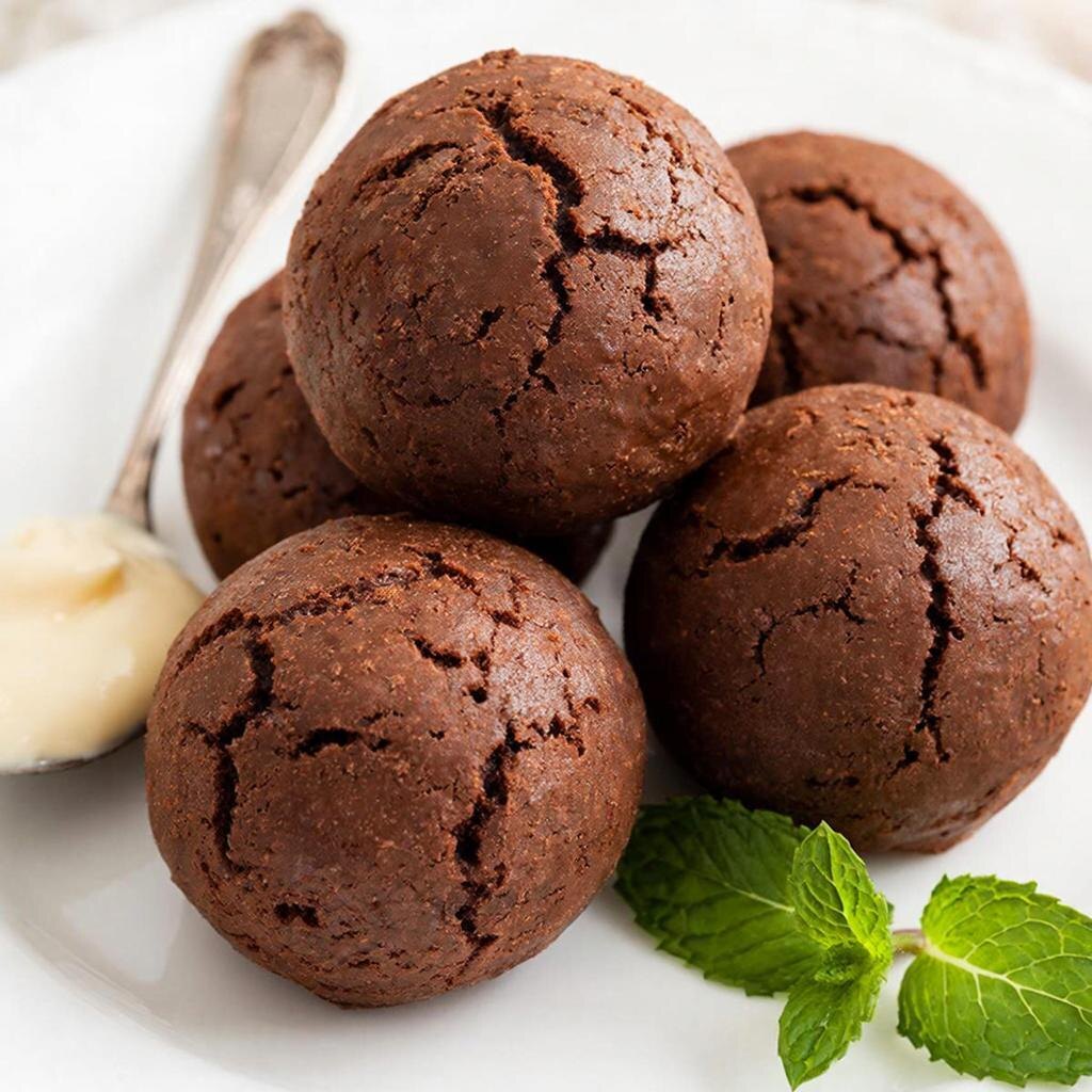 После тщательного вымешивания теста Возьмите небольшое количество теста (1-1,5 ст. л.) и руками скатайте шарик размером чуть больше грецкого ореха. Обваляйте каждое пирожное в какао, равномерно покрывая его со всех сторон.