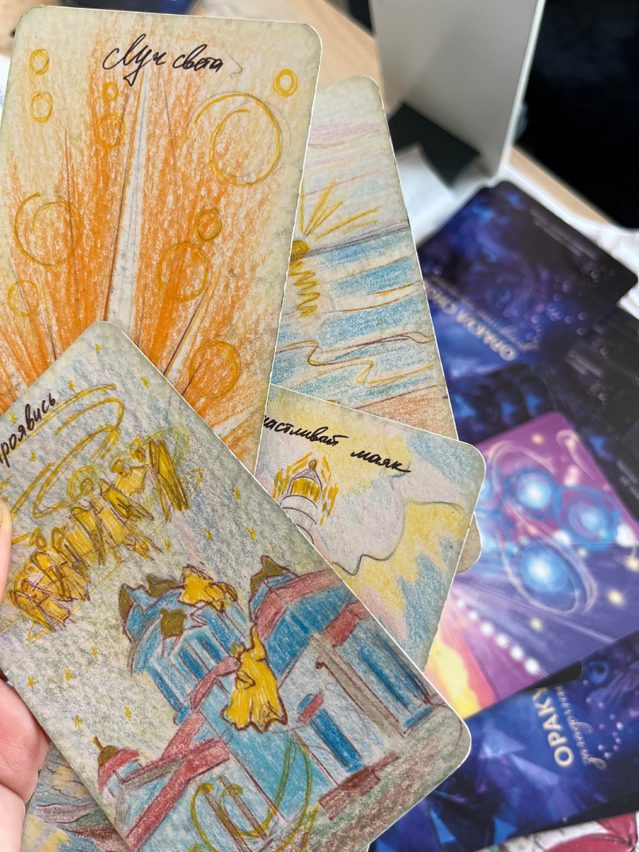 Оракул снов есть в эскизном формате и в Художественном. Эскизный позволяет провести через цвет Свои смыслы. Оба Оракула являются уникальными инструментами для Ваших практик.