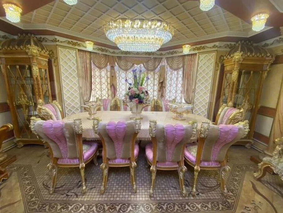 Набор опций комфорта достаточно стандартный для элитки, главная изюминка здесь – дизайнерская отделка, превратившая в паре с эксклюзивной авторской мебелью помещение в подобие царского дворца.