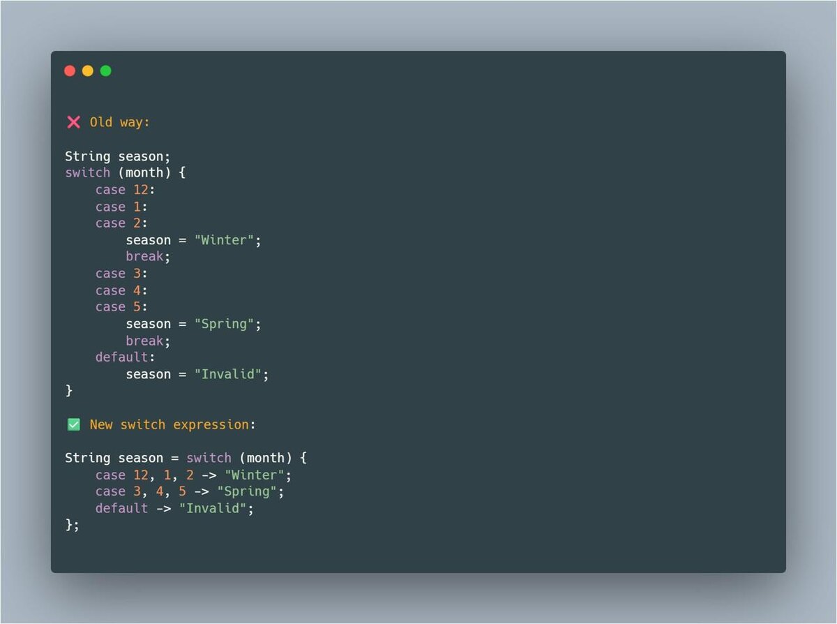 π‘ Java ΡΠΎΠ²Π΅Ρ: Π½Π°ΡΠΈΠ½Π°Ρ Ρ Java 14 Π²Ρ ΠΌΠΎΠΆΠ΅ΡΠ΅ ΠΈΡΠΏΠΎΠ»ΡΠ·ΠΎΠ²Π°ΡΡ **switch expressions** - ΠΊΠΎΠ΄ ΡΡΠ°Π½ΠΎΠ²ΠΈΡΡΡ ΠΊΠΎΡΠΎΡΠ΅ ΠΈ ΡΠΈΡΠ΅ ΠΏΡΠΈ Π»ΠΎΠ³ΠΈΠΊΠ΅ Ρ Π½Π΅ΡΠΊΠΎΠ»ΡΠΊΠΈΠΌΠΈ