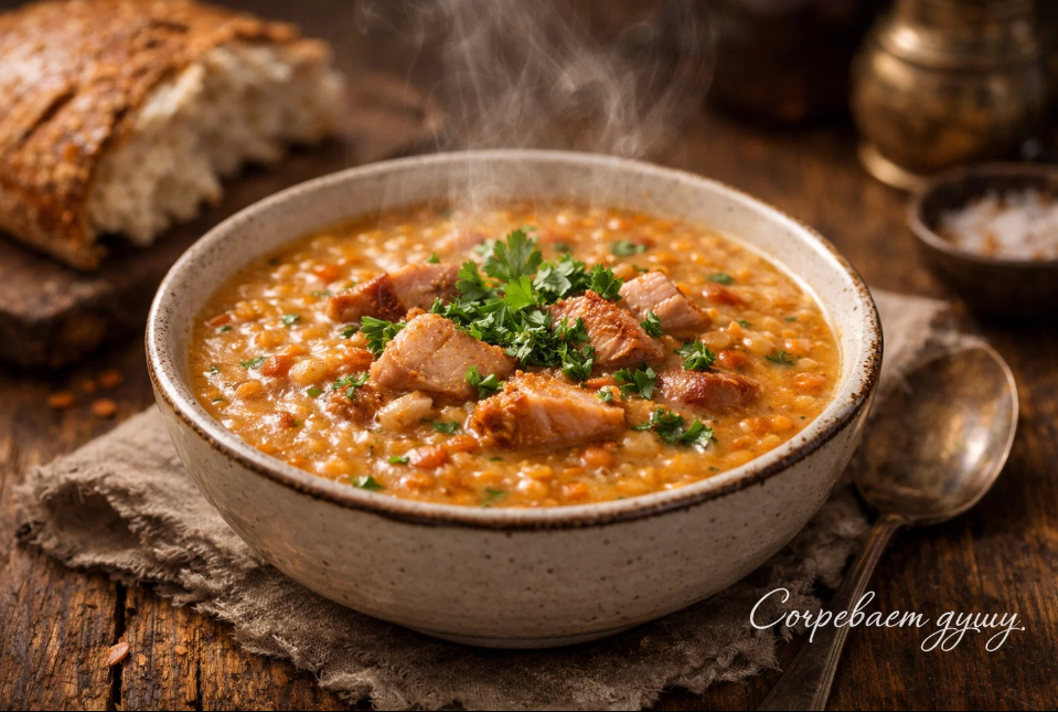 Есть блюда, которые согревают не только тело, но и душу. Чечевичный суп с копчёной курицей — именно из таких. Он появляется на столе в холодные вечера, когда за окном метёт снег или моросит осенний дождь, и мгновенно превращает обычный ужин в настоящий праздник уюта. Густой, ароматный, с дымной ноткой от копчёностей — этот суп заставляет возвращаться к нему снова и снова.