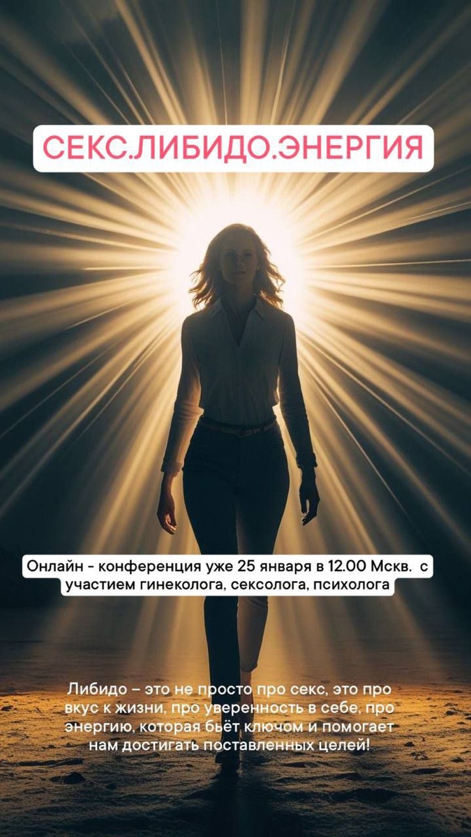 До конференции "Секс. Либидо. Энергия" остались считанные часы⏳ Это ваш последний шанс присоединиться к нам и сделать шаг навстречу своей новой, энергичной, успешной и счастливой жизни! 😍 Напоминаю, что мы стартуем 25 января в 12:00 мск и будем говорить о том, как вернуть себе энергию, повысить либидо и привлечь в свою жизнь больше денег и удовольствия! На нашей конференции вас ждут: ✅Психолог, который расскажет, почему "не хочу" сидит в нашей голове и как с этим бороться. ✅Гинеколог, который объяснит, какие физиологические факторы убивают наше либидо. ✅Сексолог, который покажет путь к оргазму и научит получать максимум удовольствия от жизни! Кто ждет встречи с нашими гуру? 👇👇👇