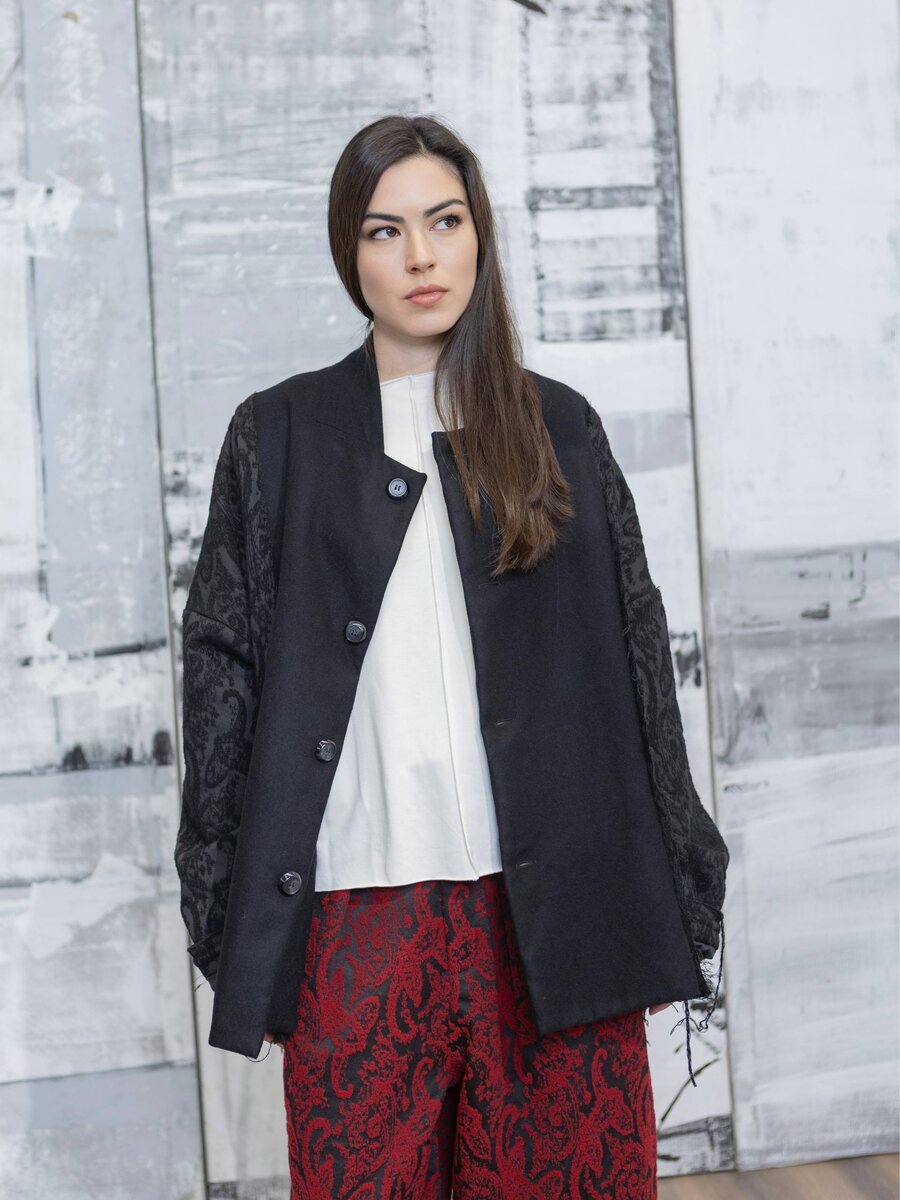выразительный художественный язык. Плотные фактуры и сложные переплетения создают ощущение глубины и движения, а узнаваемый пейсли приобретает графичность и современное звучание. Жаккард в коллекции выступает как архитектурный элемент — он формирует силуэты, подчёркивает объём и добавляет образам тактильную насыщенность. Пейсли, освобождённый от декоративной избыточности, становится символом культурной памяти, встроенной в эстетику авангарда. Коллекция балансирует между традицией и экспериментом, ремеслом и концептом, оставаясь верной философии LA VACA LOCA — интеллектуальной моде вне времени и трендов. Изделия доступны для заказа со свободного склада в Москве📌 Для оптового сотрудничества пишите нам: 🌐по номеру 8 800 511 51 95 🌐- +7 495 146-92-72 🌐Наш сайт — https://sollery.pro 📩-на почту info@sollery.fashion